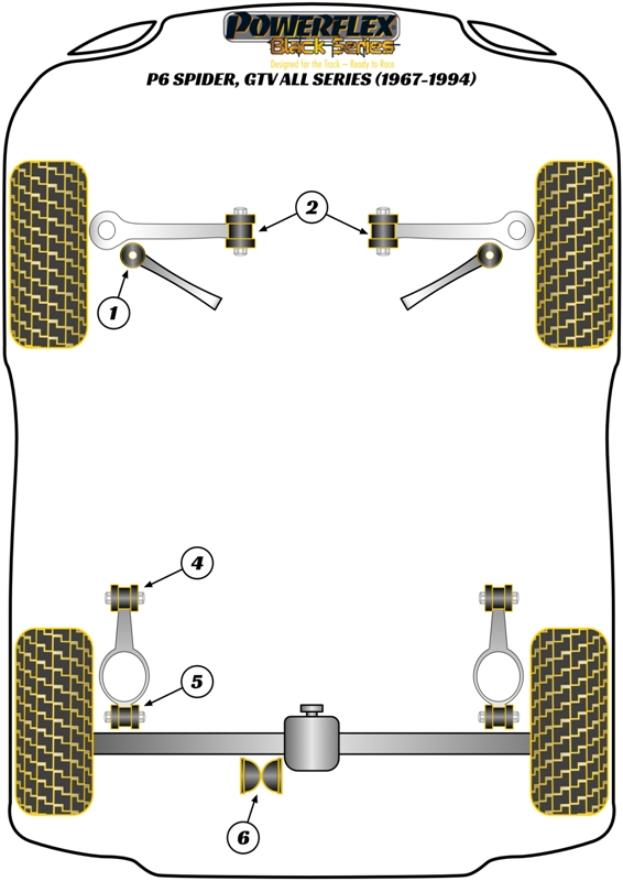 Tuleje Powerflex Black P6 Spider, GTV all series (1967-1994)