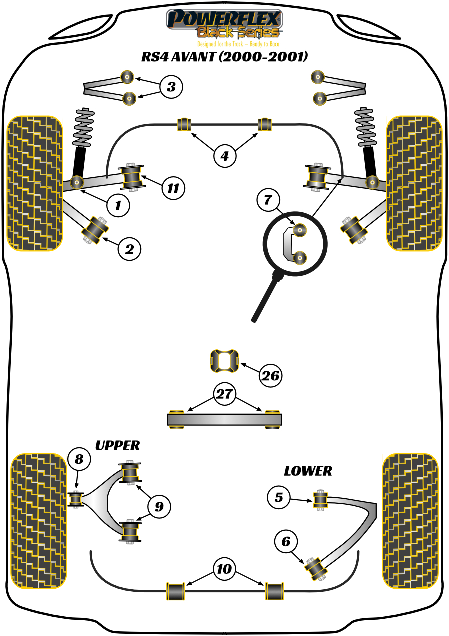 Tuleja Poliuretanowa Powerflex Black Audi A4 / S4 / RS4 A4 / S4 / RS4 B5 (1995-2001) RS4 Avant (2000-2001) PFR3-206BLK
