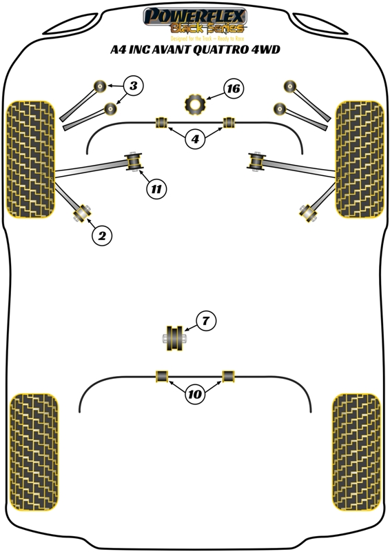 Tuleja Poliuretanowa Powerflex Black Audi A4 / S4 / RS4 A4 / S4 / RS4 B7 (2005-2008) A4 inc. Avant Quattro (4WD) PFR3-210-16BLK