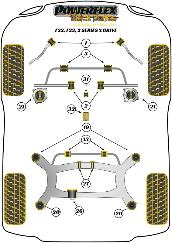 Tuleja Poliuretanowa Powerflex Black BMW 2 Series F22, F23 xDrive (2013 on) PFR5-1913-22BLK