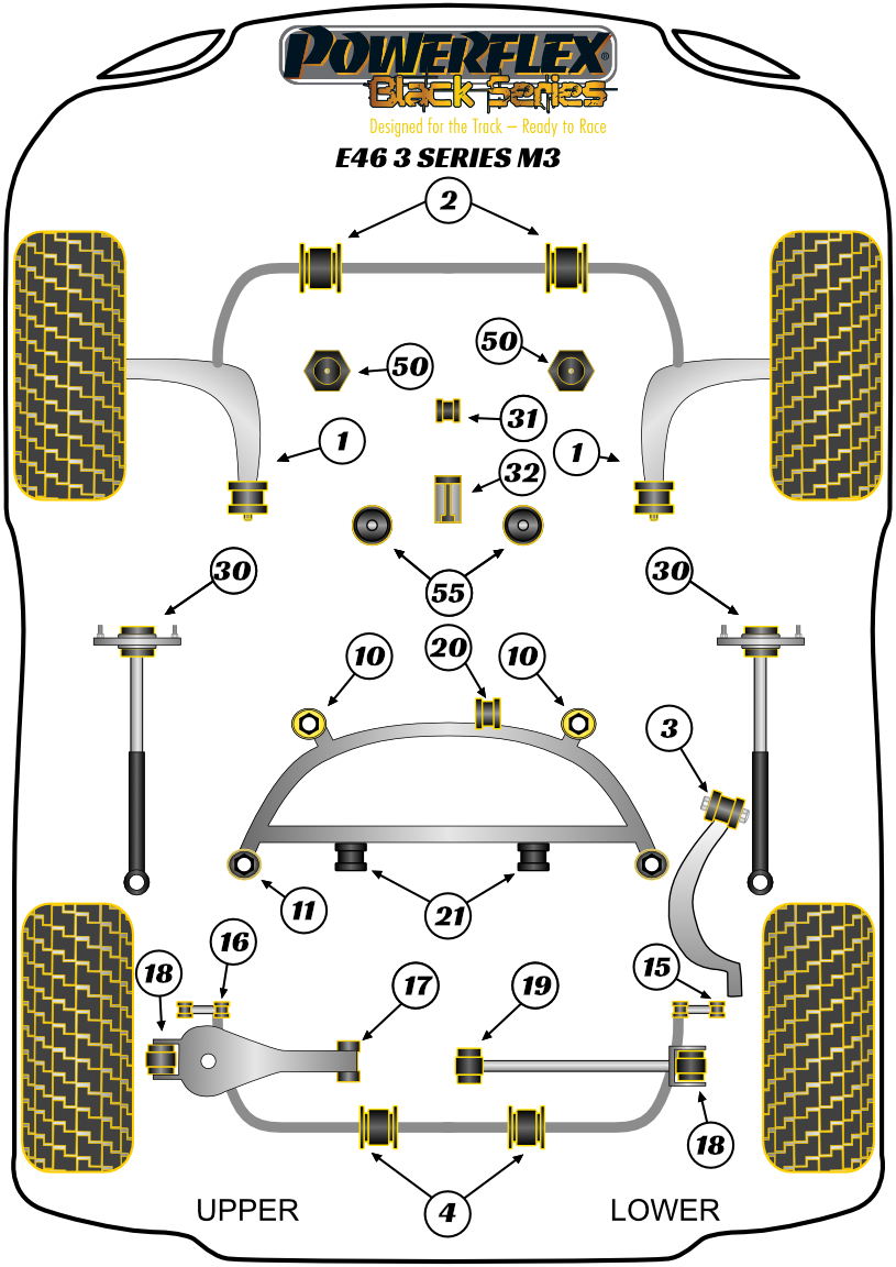 Tuleja Poliuretanowa Powerflex Black BMW 3 Series E46 (1999 - 2006) E46 M3 inc CSL PFR5-5630-10BLK