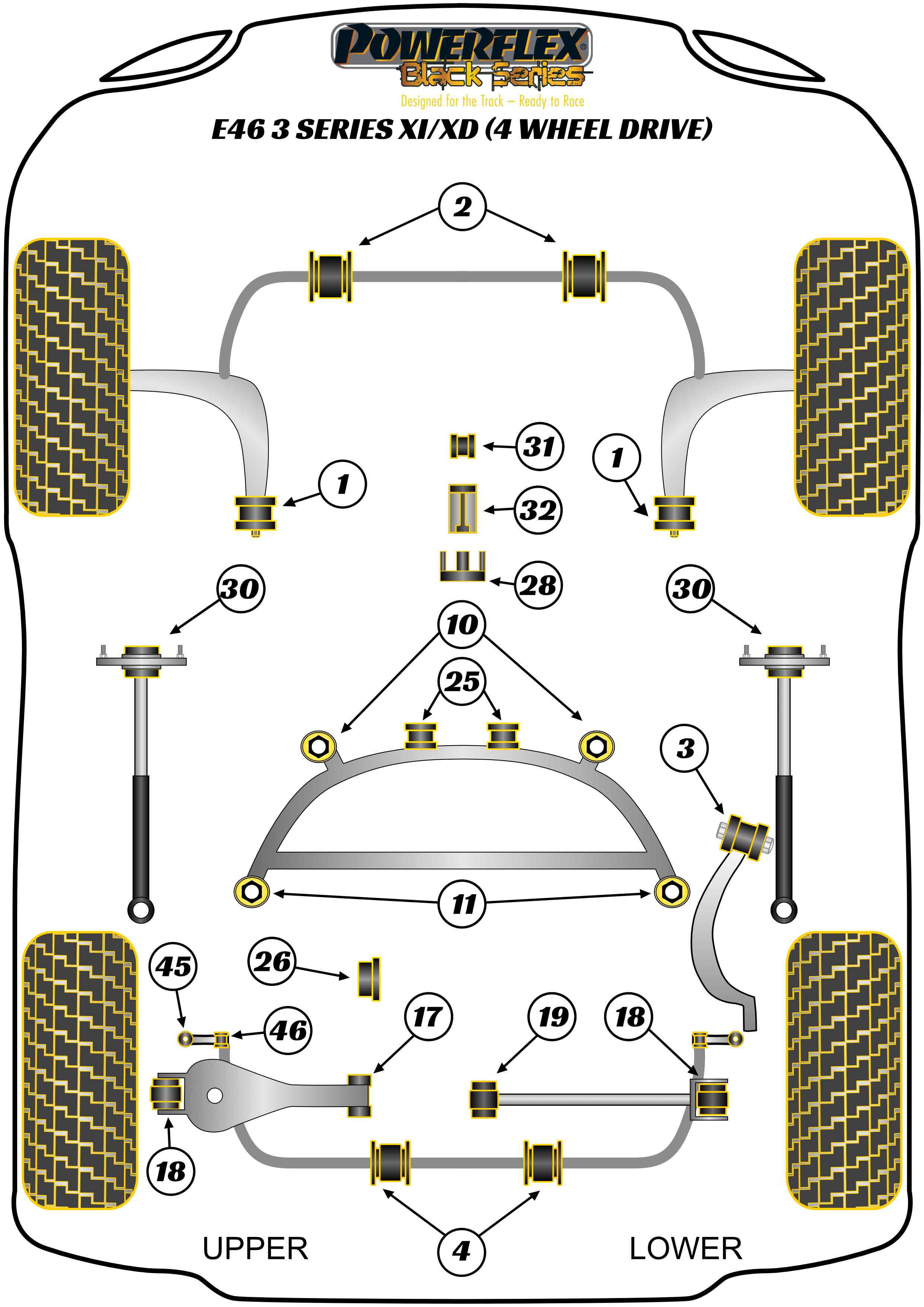 Tuleja Poliuretanowa Powerflex Black BMW 3 Series E46 (1999 - 2006) E46 Xi/XD (4wd) EXH035BLK