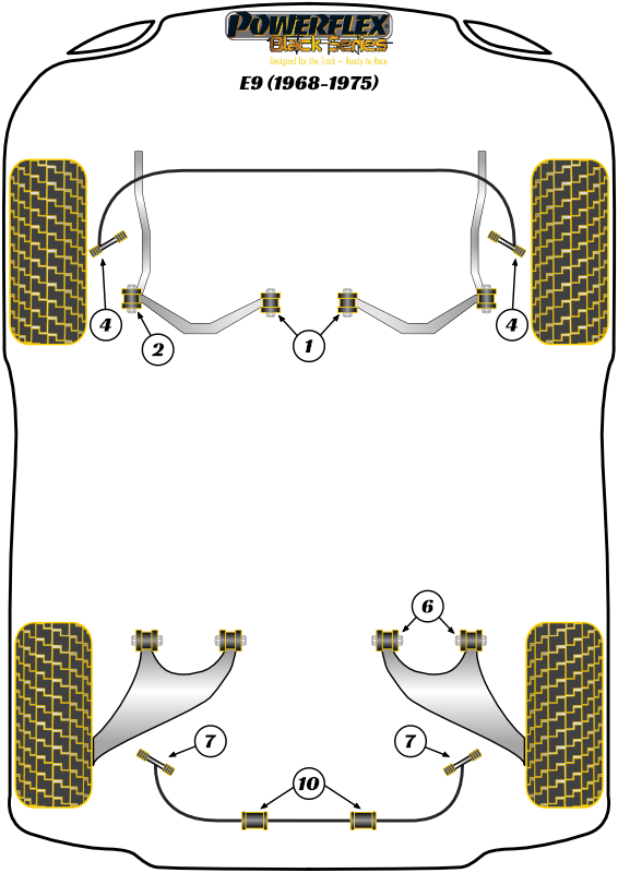 Regulowana tuleja tylnego wahacza wleczonego Powerflex Black Series BMW E9 2.5CS - 3.0CSL (1968-1975) PFR5-306GBLK
