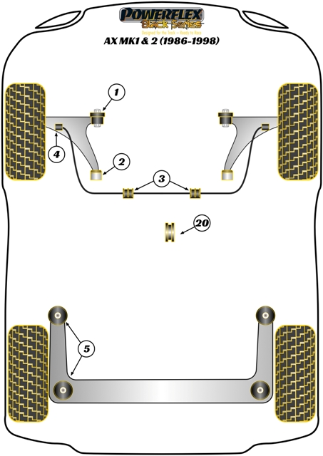 Tuleja Poliuretanowa Powerflex Black Citroen AX Mk1 & 2 (1986-1998) PFF12-1101BLK