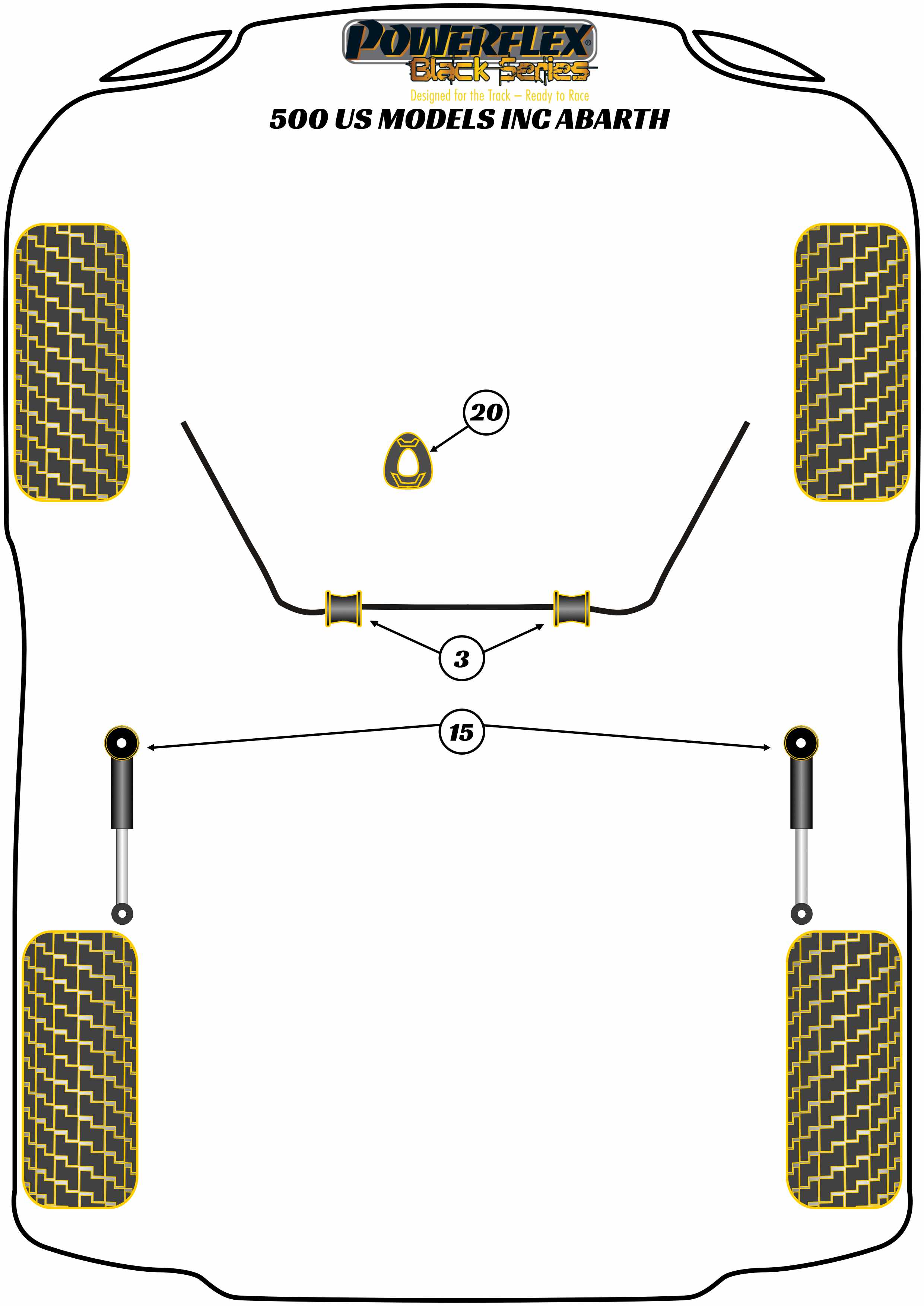 Tuleja Poliuretanowa Powerflex Black Fiat 500 Models 500 US Models inc Abarth PFF16-503-20BLK