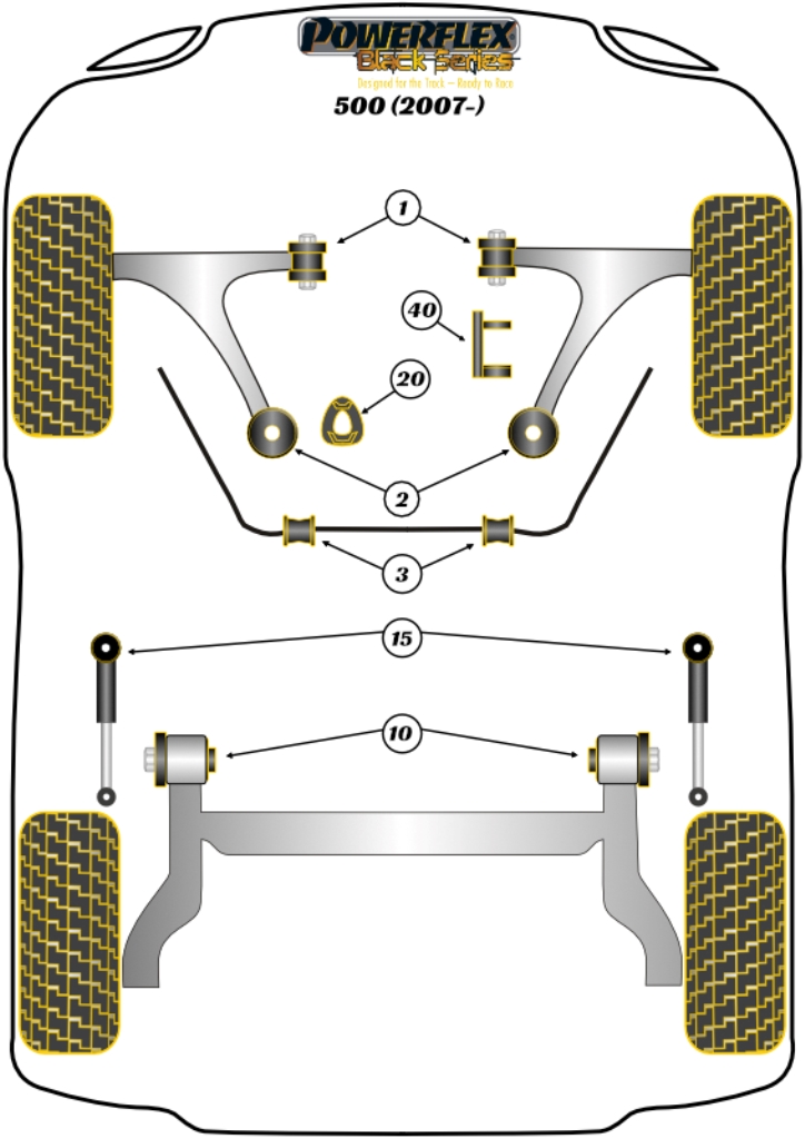 Tuleja Poliuretanowa Powerflex Black Fiat 500 Models 500 inc Abarth (2007-) PFF16-501GBLK