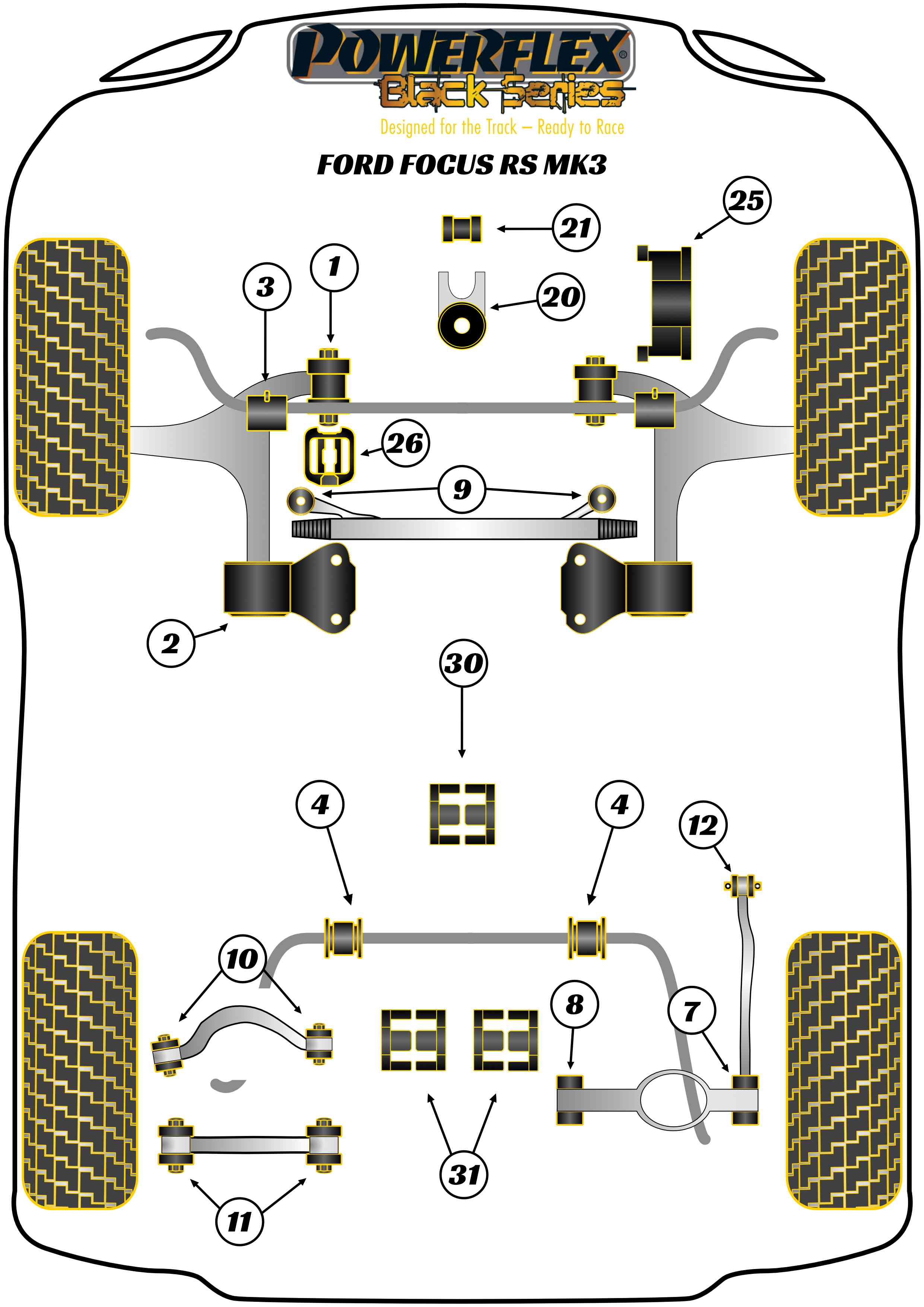 Tuleja Poliuretanowa Powerflex Black Ford Focus Models Focus Mk3 inc ST and RS (2011 on) Focus MK3 RS PFR19-810GBLK