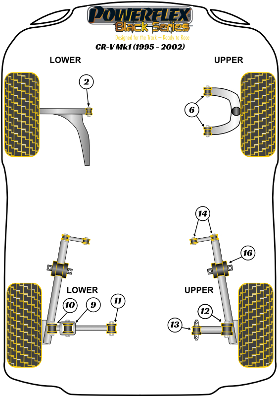 Zewnętrzna tuleja tylnego górnego wahacza Powerflex Black Series Honda CR-V Models & CR-V Mk1 (1995-2002) PFR42-612BLK