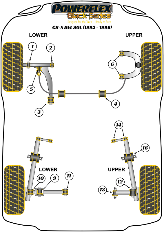 Tuleja przedniego górnego wahacza Powerflex Black Series Honda CR-X Models & CR-X del Sol (1992-1998) PFF25-106BLK