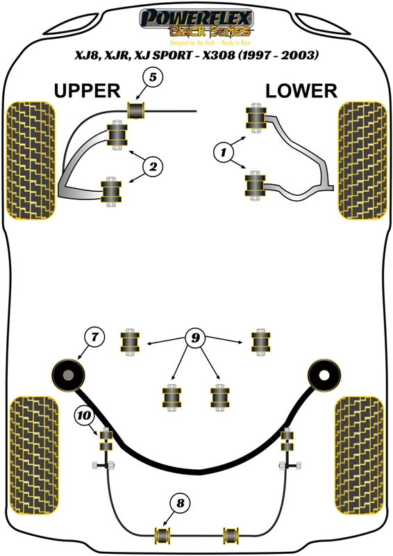 Tuleja Poliuretanowa Powerflex Black Jaguar (Daimler) XJ8, XJR, XJ Sport - X308 (1997 - 2003) PFF27-301BLK
