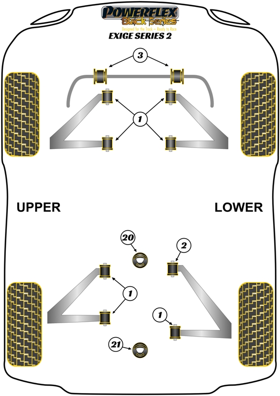 Przednia i tylna tuleja wahacza Powerflex Black Series Lotus Exige (2000 - 2021) & Exige Series 2 (2004-2011) PF34-1001BLK