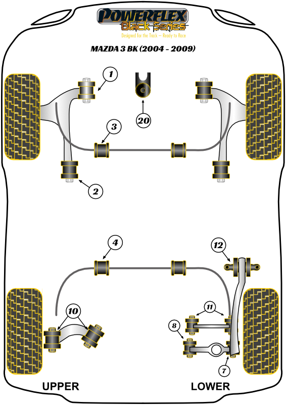 Tuleja górnego tylnego wahacza Powerflex Black Series Mazda Mazda 3 & Mazda 3 BK (2004-2009) PFR19-810BLK
