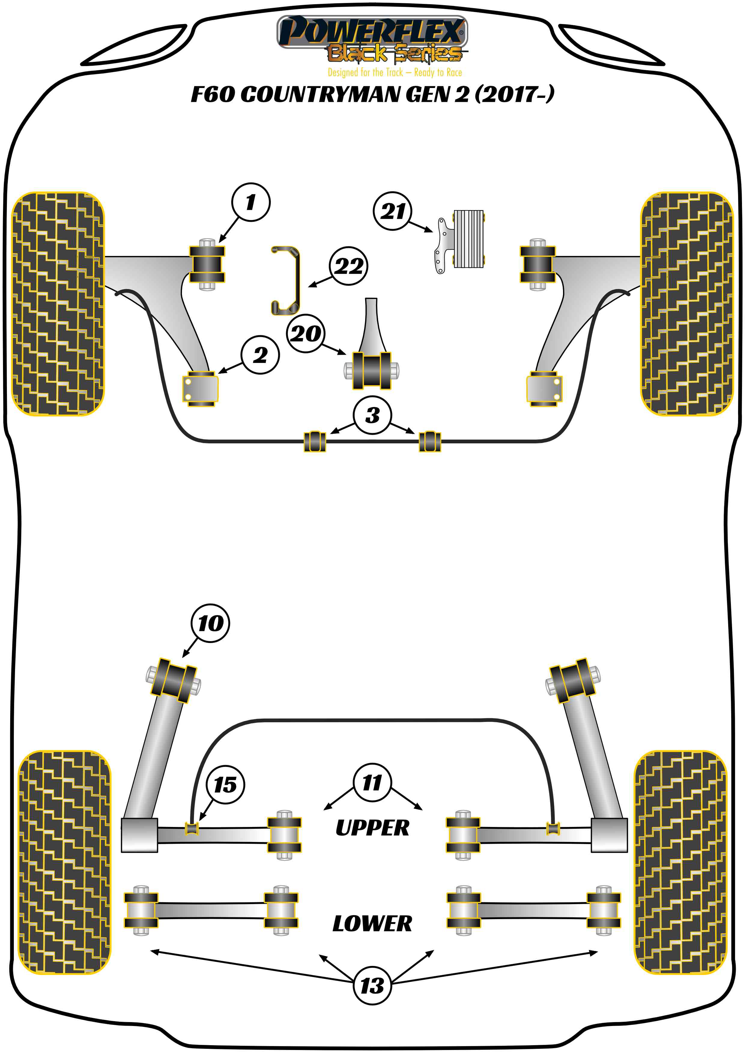 Przednia tuleja przedniego wahacza Powerflex Black Series Mini F60 Countryman Gen 2 (2017 - ON) PFF5-1301BLK