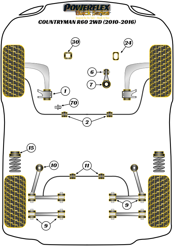 Przednia tuleja tylnego wahacza wleczonego 60 mm Powerflex Black Series Mini R60 Countryman Gen 1 (2010-2016) & R60 Countryman Gen 1 2WD (2010-2016) PFR5-1103BLK