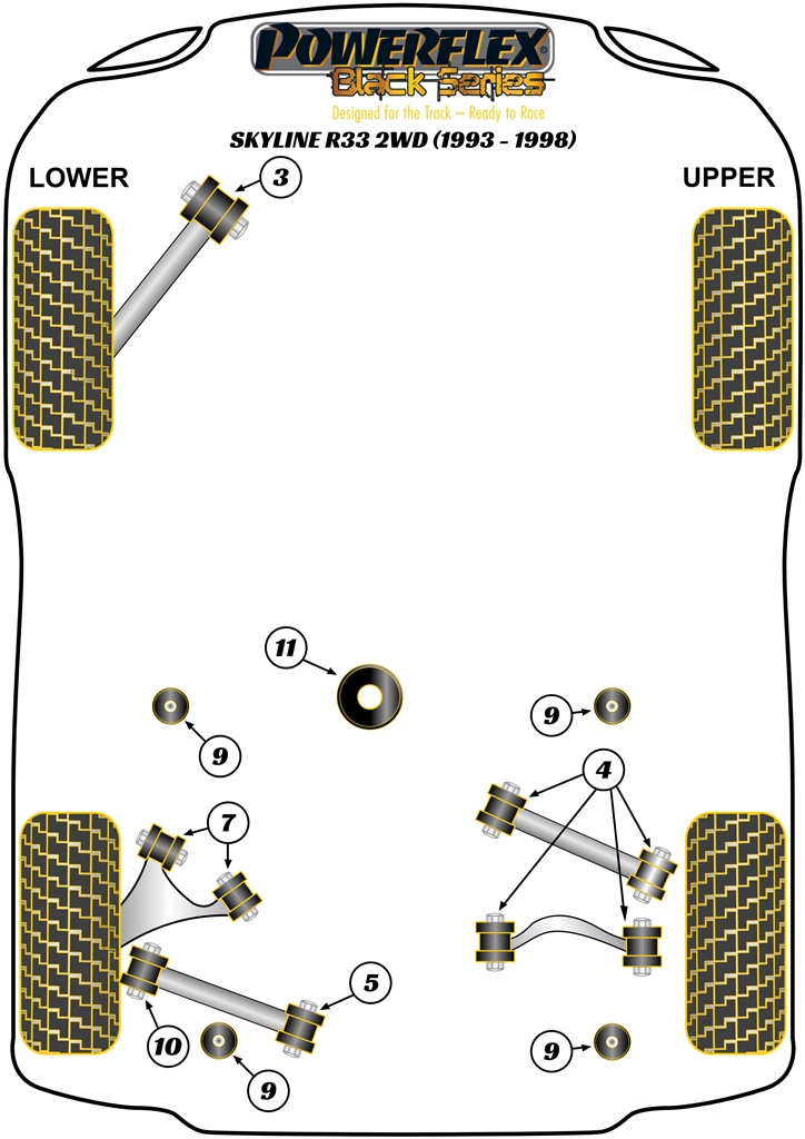 Tuleja tylnego górnego i dolnego wahacza Powerflex Black Series Nissan Skyline & R33 2WD Incl. GTS & GTS25 (1993 - 1998) PFR46-204BLK