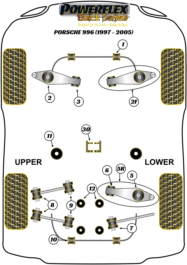 Zestaw wahacza i tulei Powerflex Black Series Porsche 911 996 (1997-2005) PF57K-1001BLK