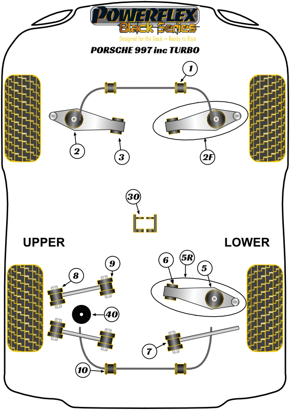 Zestaw wahacza i tulei Powerflex Black Series Porsche 911 997 (2005-2013) & 997 inc. Turbo (2005-2013) PF57K-1001BLK