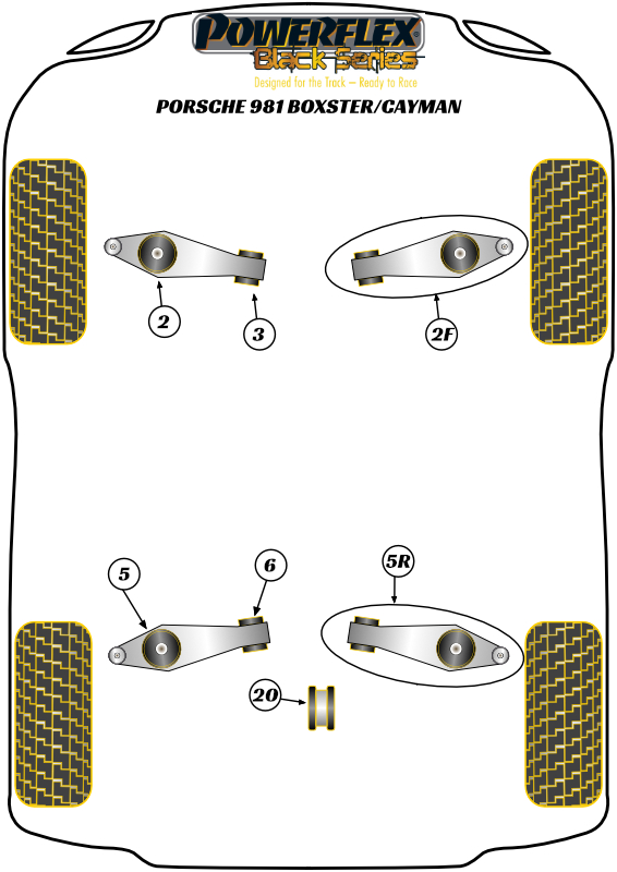 Zestaw wahacza i tulei Powerflex Black Series Porsche 981 Boxster/Cayman (2012 - 2016) PF57K-1001BLK