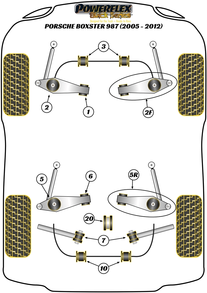 Tuleja Poliuretanowa Powerflex Black Porsche 987 Boxster (2005-2012) PFR57-510-20BLK