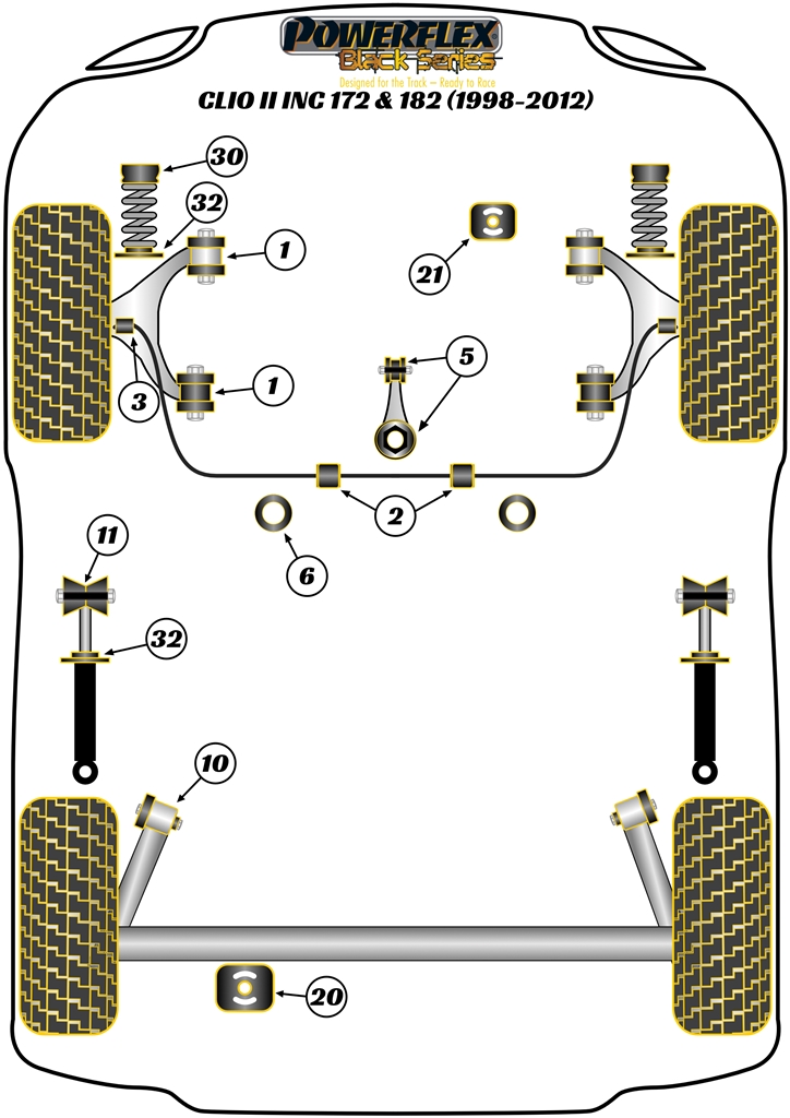 Tuleja Poliuretanowa Powerflex Black Renault Clio Models Clio II inc 172 & 182 (1998-2012) PFF60-1120BLK