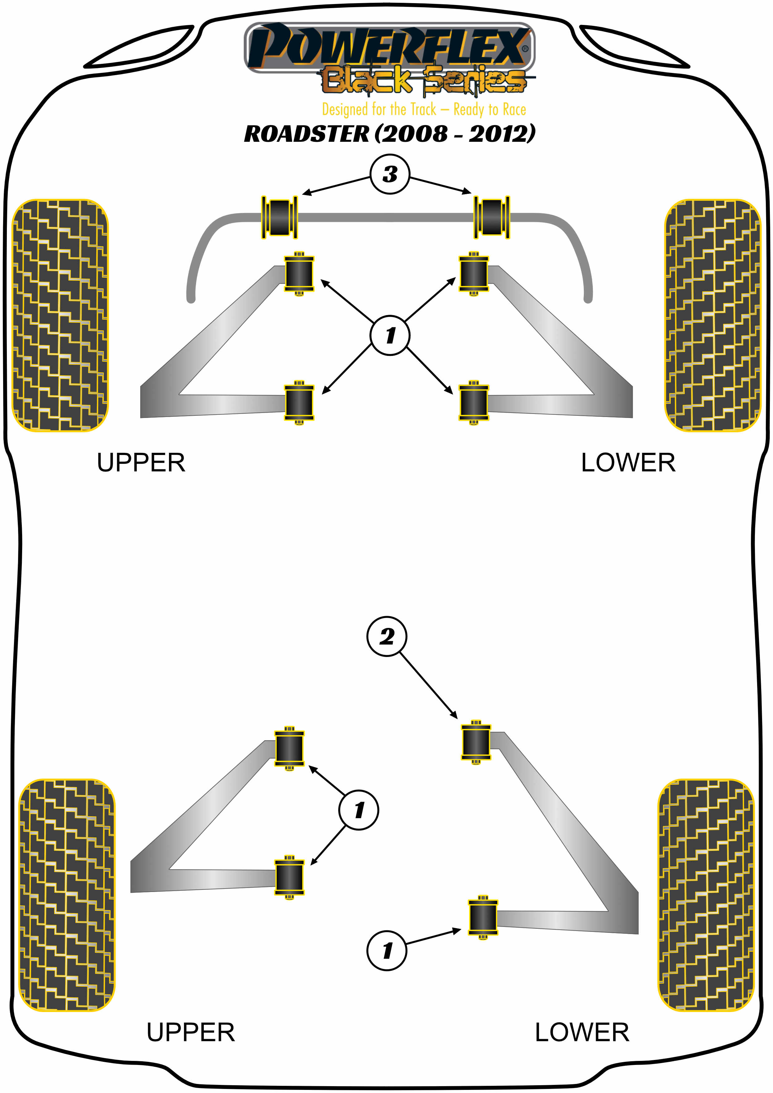 Przednia i tylna tuleja wahacza Powerflex Black Series Tesla Roadster (2008-2012) PF34-1001BLK