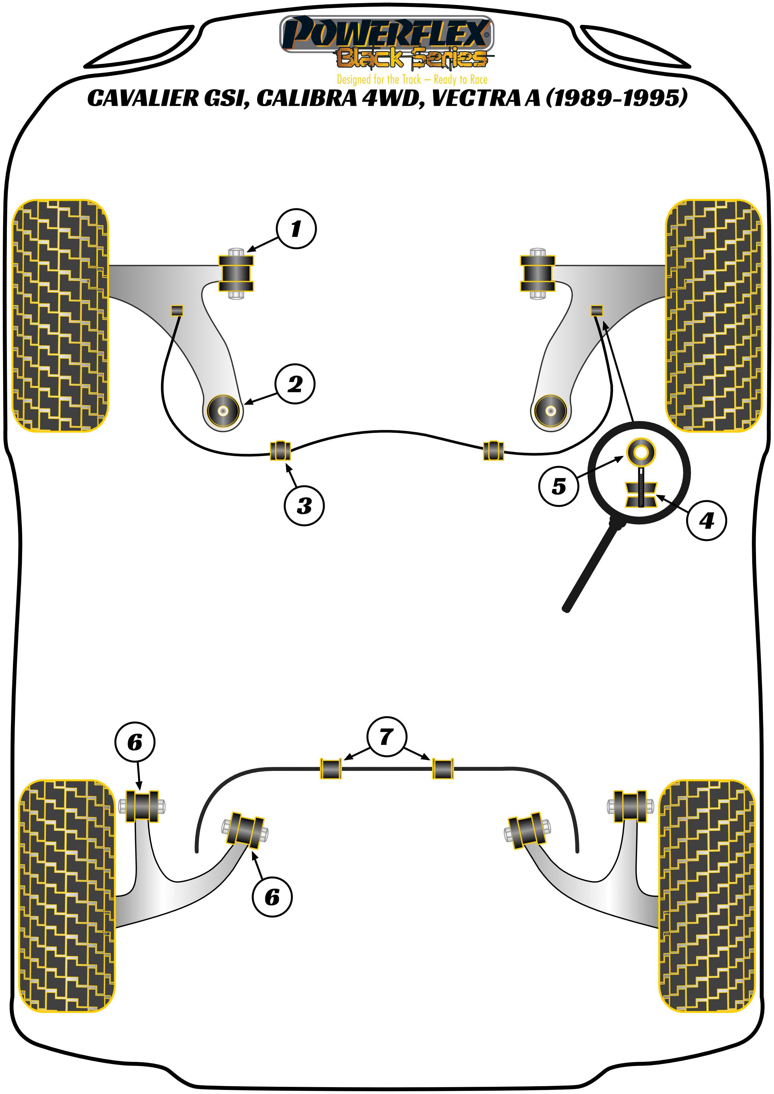 Tuleja tylnego wahacza wleczonego Powerflex Black Series Vauxhall / Opel Cavalier GSi/Calibra 4WD, Vectra A (1989-1995) PFR80-440MLK-BLK