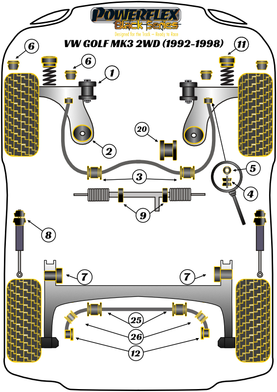 Tuleja Poliuretanowa Powerflex Black Volkswagen Golf Mk3 2WD (1992-1998) PFR85-226-25BLK