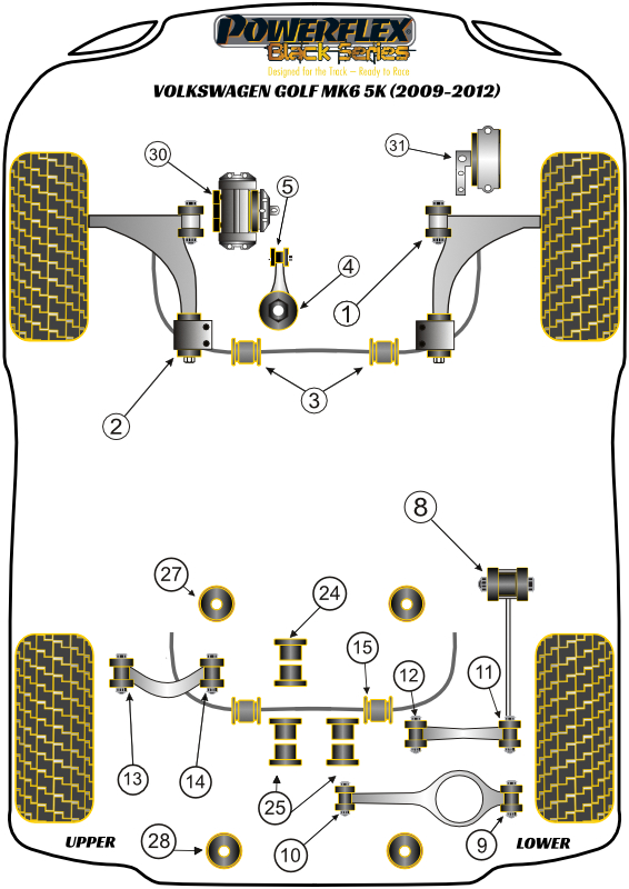 Tuleja Poliuretanowa Powerflex Black Volkswagen Golf Golf MK6 inc R 5K (2009-2012) PFF85-501GBLK