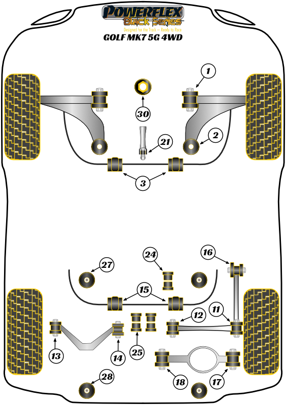 Tuleja stabilizatora przód 25mm Powerflex Black Series Volkswagen Golf & Golf MK7 5G (2012 - 2019)\Golf MK7 5G 4WD inc R (2012-2019) PFF85-803-25BLK