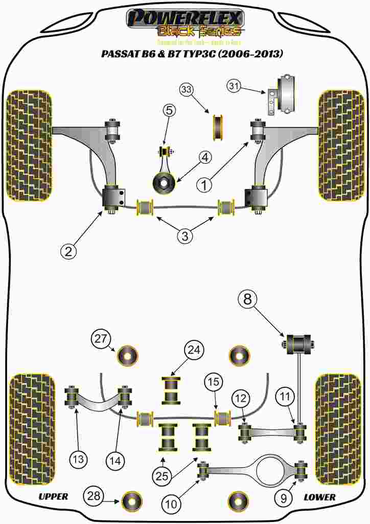Tuleja Poliuretanowa Powerflex Black Volkswagen Passat Models Passat B6 & B7 Typ3C (2006-2013) PFF85-533BLK