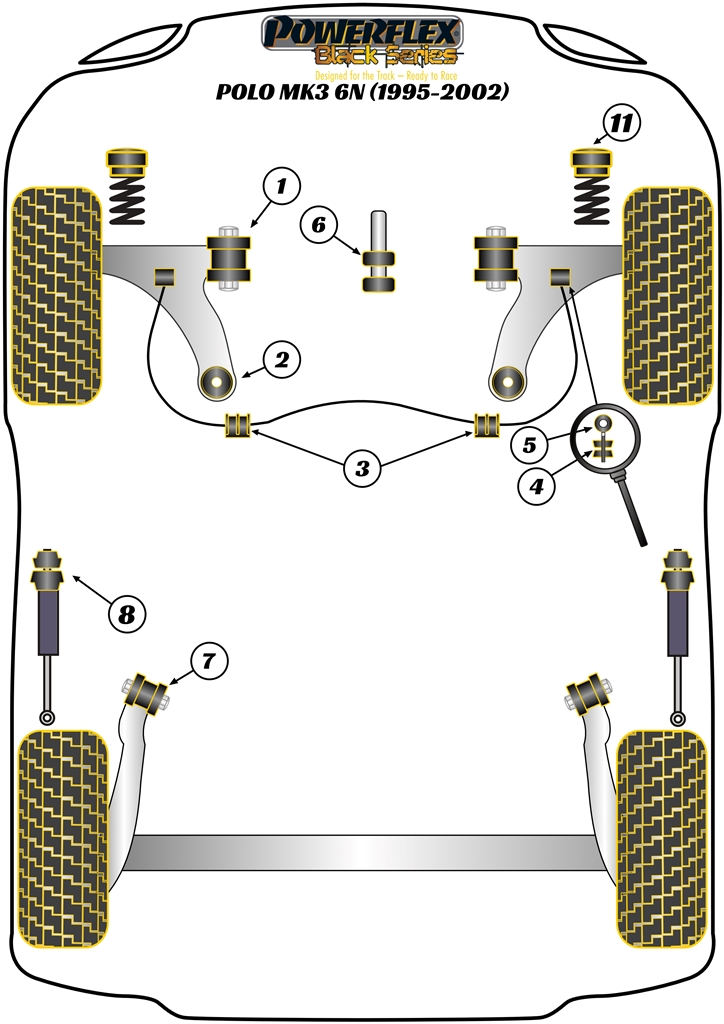 Wewnętrzna tuleja przedniego wahacza (tył) Powerflex Black Series Volkswagen Polo & Polo MK3 6N (1995 - 2002) PFF85-402BLK