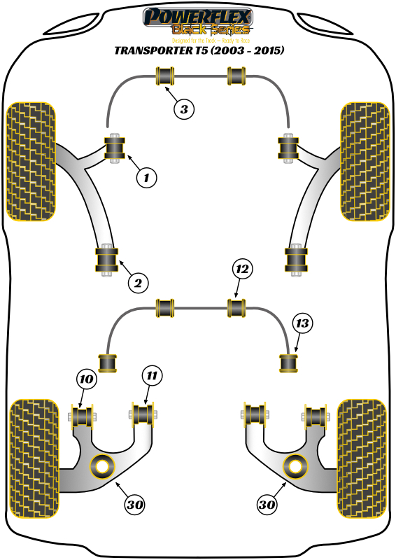 Zewnętrzna tuleja tylnego wahacza Powerflex Black Series Volkswagen Transporter Models & T5 Transporter inc. 4Motion (2003-2015) PFR85-1310BLK