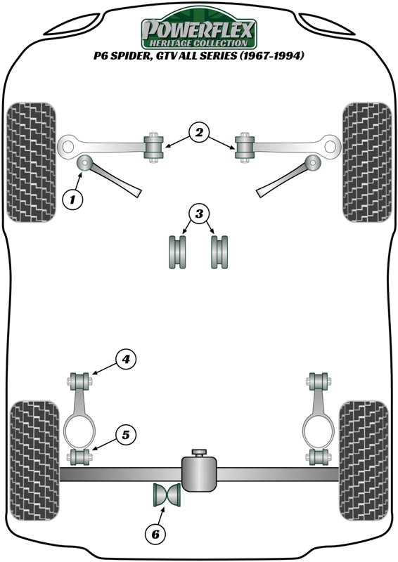 Tuleja Poliuretanowa Powerflex Heritage Alfa Romeo P6 Spider, GTV all series (1967-1994) PFF1-301H