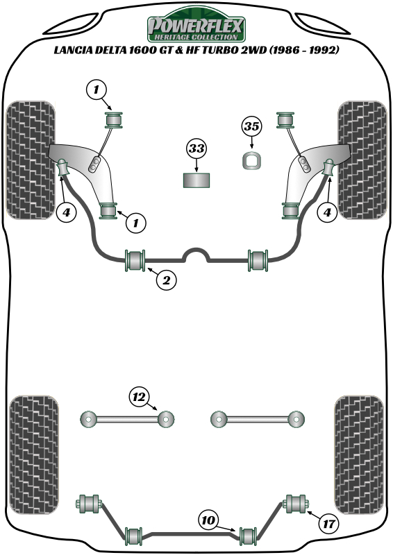 Tuleja Poliuretanowa Powerflex Heritage Lancia Delta 1600 GT & HF Turbo 2WD (1986-1992) PFF30-335H