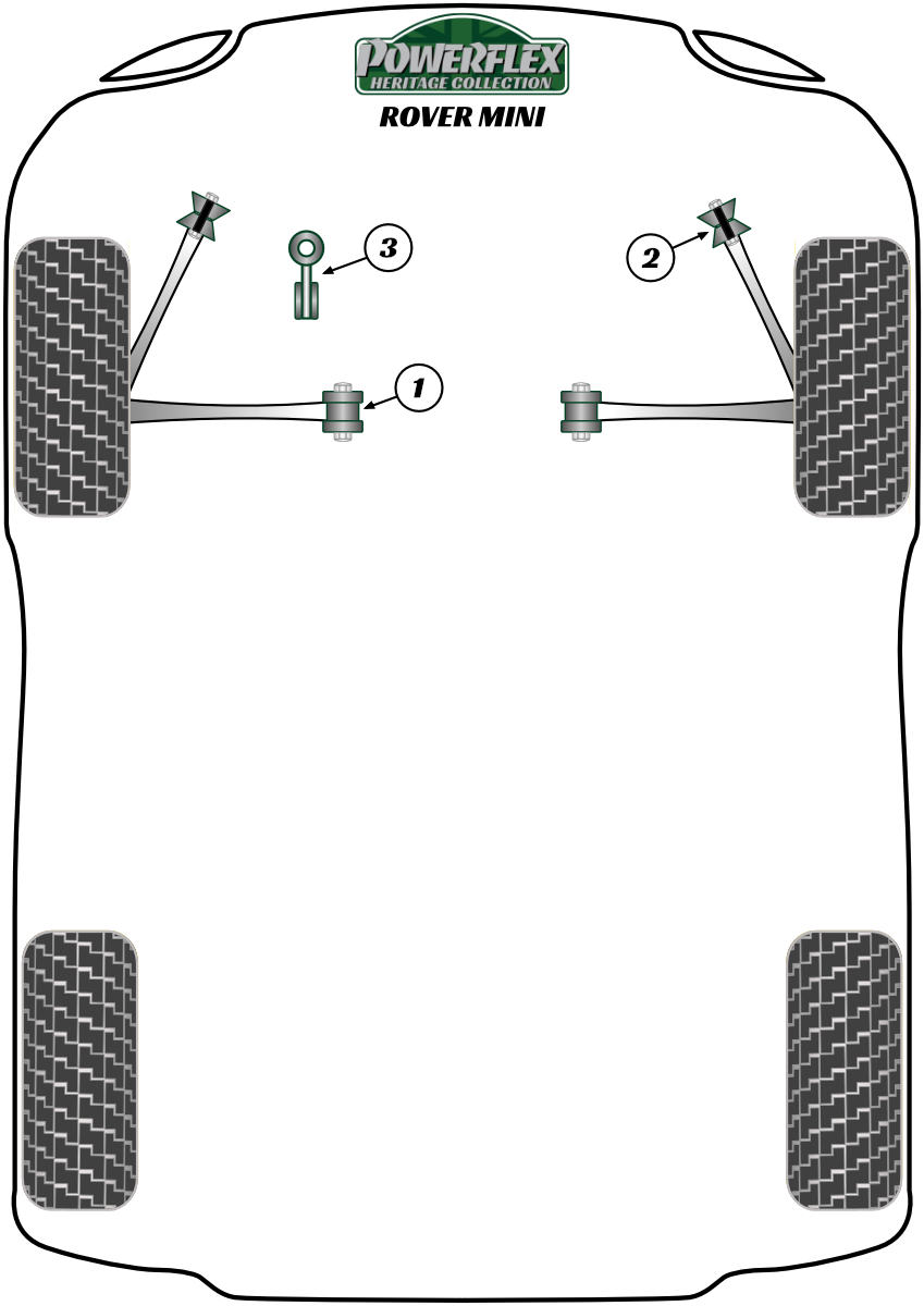 Zestaw mocowania tylnej ramy pomocniczej (do 1976) Powerflex Heritage Collection Rover Mini (1959 - 2000) PFR63-110H