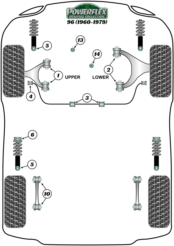 Tuleja przedniego górnego wahacza trójkątnego Powerflex Heritage Collection Saab 96 (1960-1979) PFF66-401H