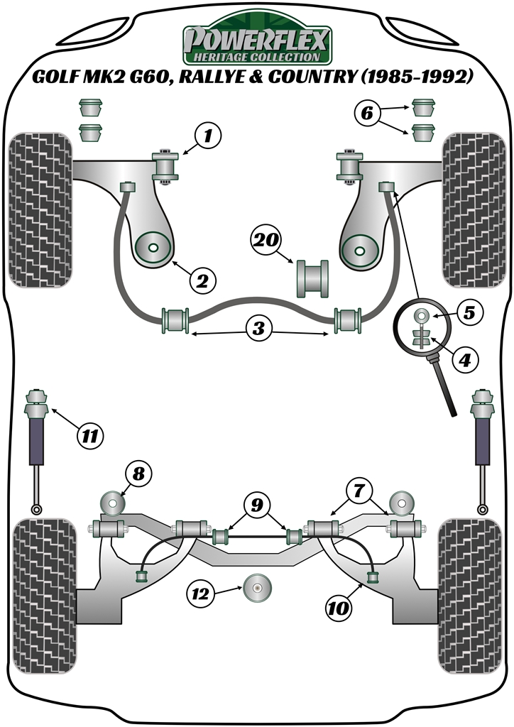 Tuleja Poliuretanowa Powerflex Heritage Volkswagen Golf Golf MK2 (1985 - 1992) Golf MK2 4WD, Inc Rallye & Country (1985 - 1992) PFR85-264-20H