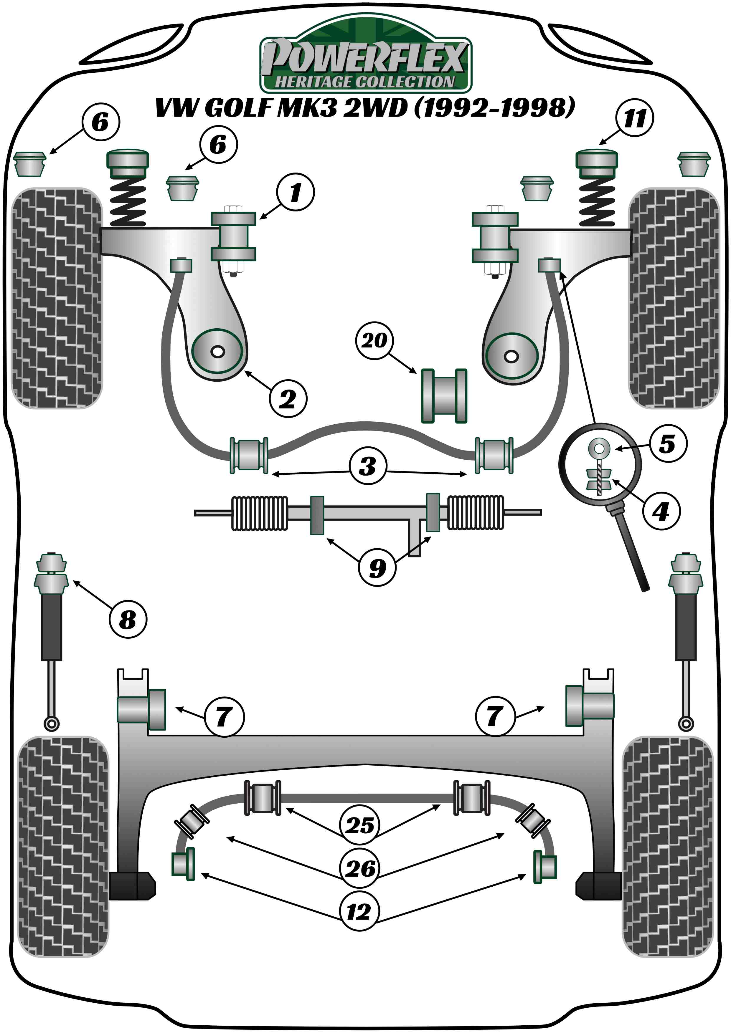 Tuleja Poliuretanowa Powerflex Heritage Volkswagen Golf Golf Mk3 (1992 - 1998) Golf MK3 2WD (1992 - 1998) PFF85-205-20H