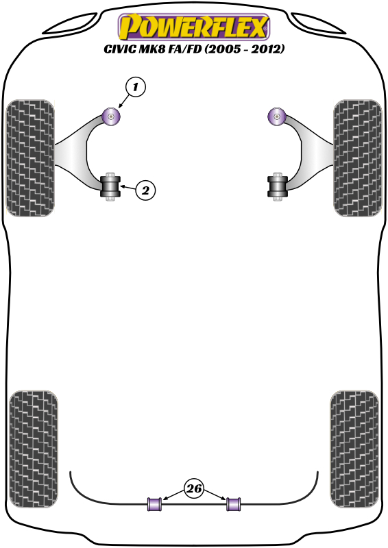 Przednia tuleja dolnego wahacza przedniego stałe pochylenie Powerflex Road Series Honda Civic Models & Civic Mk8 FA/FD Sedan (2005 - 2012) PFF25-301G