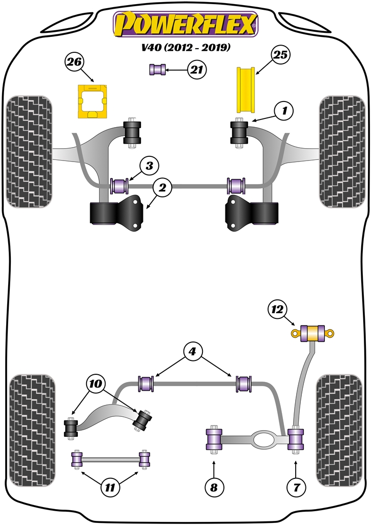 Przednia tuleja przedniego wahacza śruba 14mm Powerflex Road Series Volvo V40 (2012 - 2019) PFF19-8011