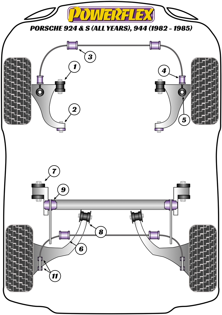 Front Anti-Roll Bar Drop Link Bush 20mm Powerflex Road Series Porsche 924 and S (all years), 944 (1982 - 1985) PFF57-205-20