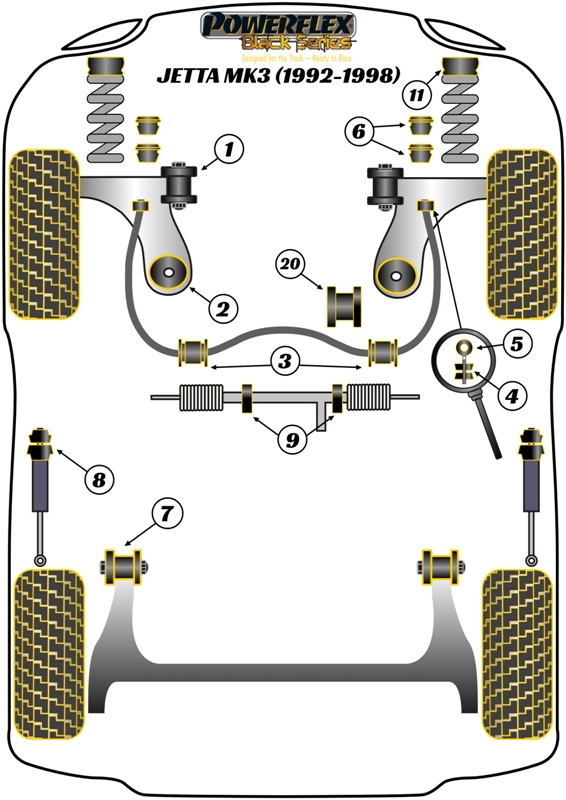 Przedni łącznik stabilizatora 20mm Powerflex Black Series Volkswagen Jetta Models & Jetta MK3 A3 (1992 - 1998) PFF85-209-20BLK
