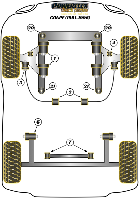 • Ich większa sztywność w porównaniu do tulei gumowych zapewnia lepszą precyzję prowadzenia oraz większą kontrolę nad pojazdem.