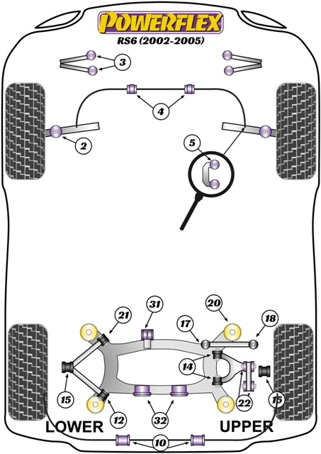 Przednia tuleja łącznika drążka stabilizatora Powerflex Road Series Audi A6 / S6 / RS6 & A6 / S6 / RS6 C5 (1997-2005)\RS6 (2002 - 2005) PFF3-213