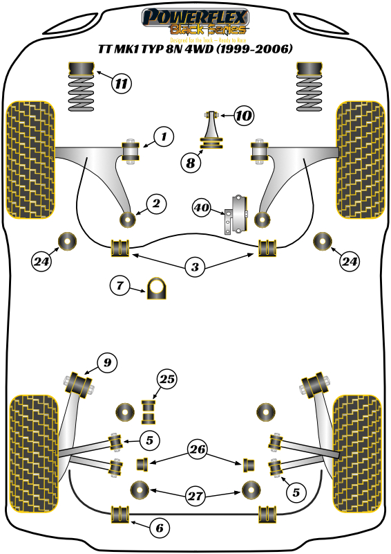 Przednia tuleja przedniego odlewanego wahacza 45mm Powerflex Black Series Audi TT Models & TT MK1 TYP 8N (1999-2006)\TT Mk1 Typ 8N 4WD (1999-2006) PFF3-501BLK