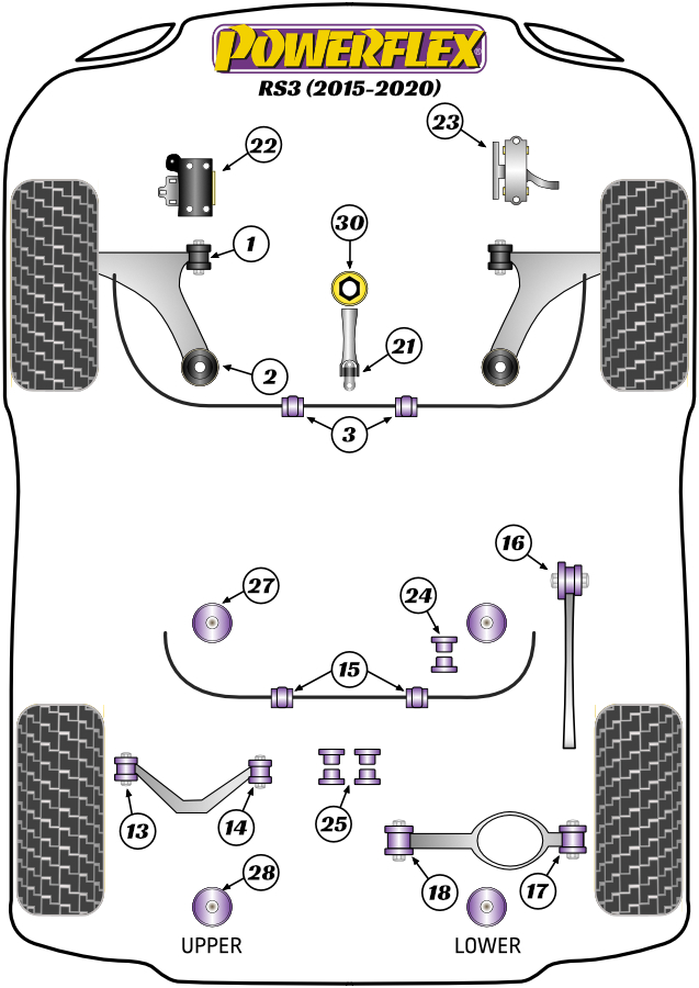 Przednia tuleja przedniego wahacza Powerflex Road Series Audi A3 / S3 / RS3 & A3 / S3 / RS3 8V (2013 - 2020)\RS3 MK3 8V (2015 - 2020) PFF85-501