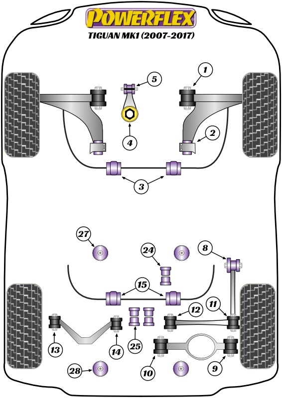 Przednia tuleja przedniego wahacza Powerflex Road Series Volkswagen Tiguan Models & Tiguan 5N MK1 (2007 - 2017) PFF85-501