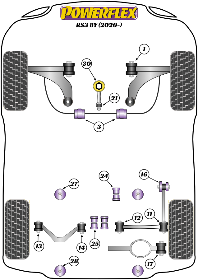 Przednia tuleja przedniego wahacza z regulacją kąta pochylenia Powerflex Road Series Audi A3 / S3 / RS3 & A3 / S3 / RS3 8Y (2020 on)\RS3 MK4 8Y (2020 on) PFF85-501G