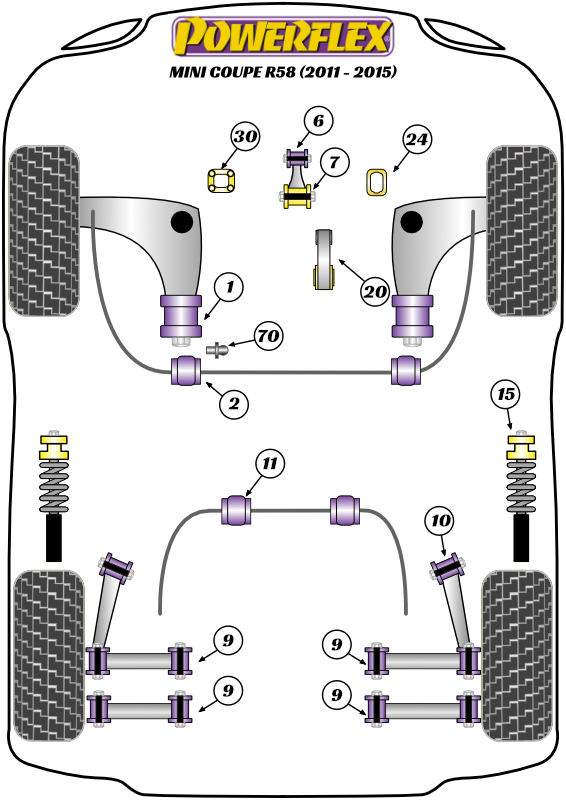 Przednia tuleja tylnego wahacza wleczonego 60 mm Powerflex Road Series Mini R58 Coupe (2011 - 2015) PFR5-1103
