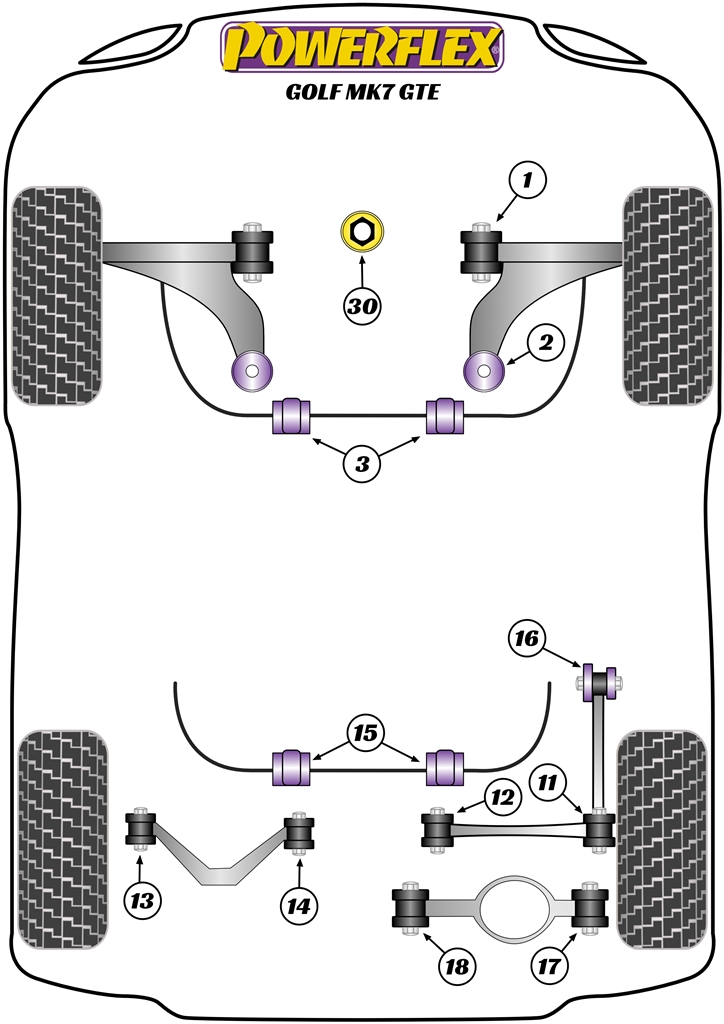 Przednie dolne mocowanie silnika, hybrydowa tuleja (Duża) - Drogowa Powerflex Road Series Volkswagen Golf & Golf MK7 5G (2012 - 2019)\Golf MK7 GTE PFF85-831